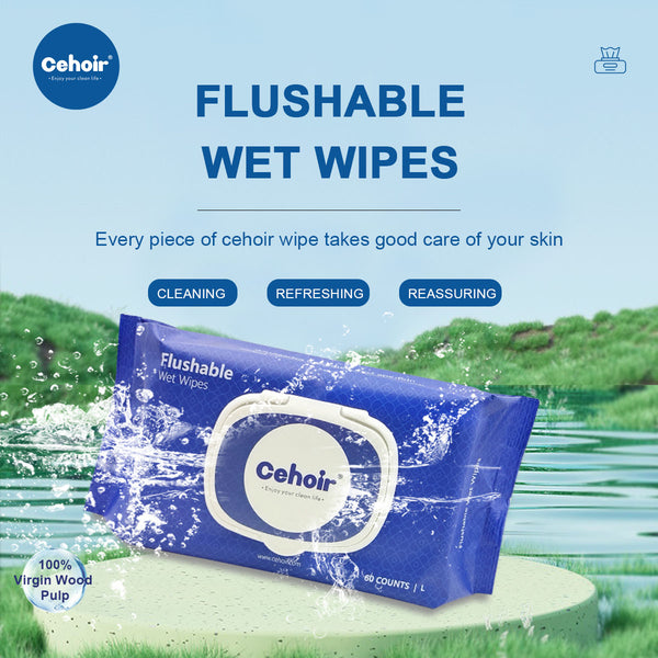 Flushable Wet Wipes 100%Virgin Wood Pulp(1 pack)