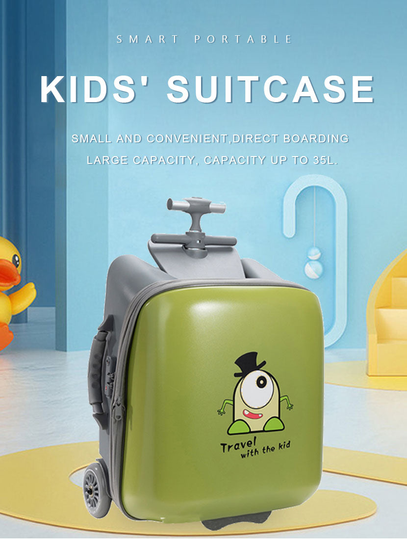 Children's luggage (green) can board can ride boys and girls walking baby magic baby trolley suitcase 20 inches can be expanded(customs lock)